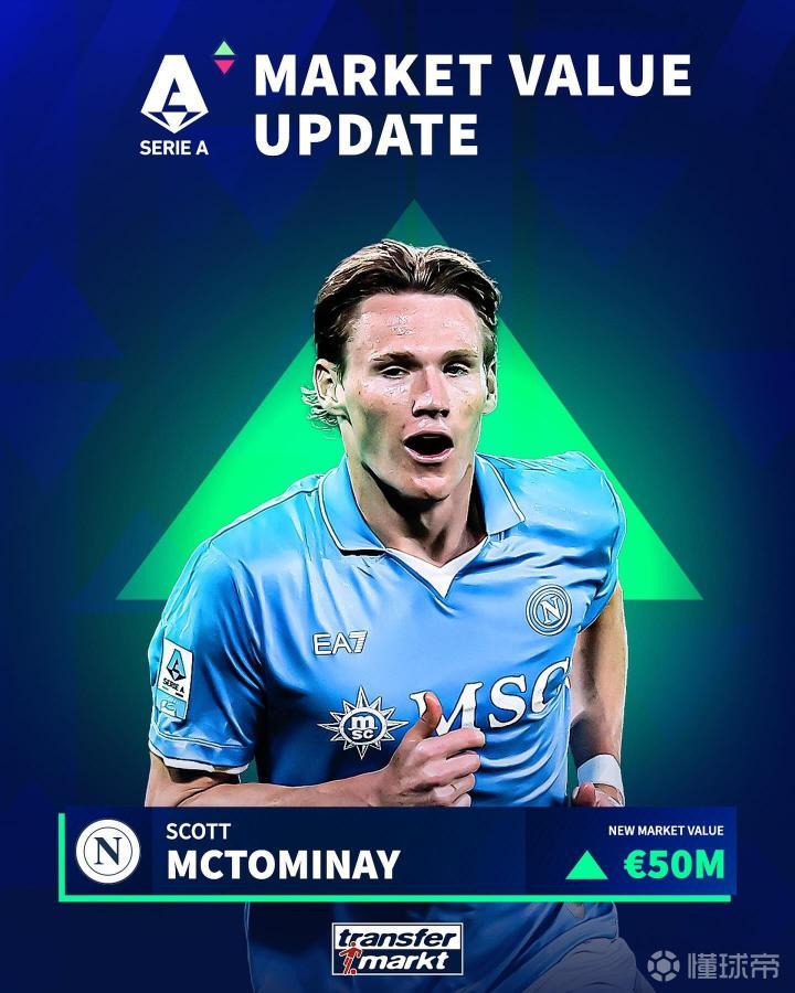 在身价榜的后面几名中,那不勒斯和AC米兰的球员也占据了一定的位置。布翁焦尔诺以5000万欧元的身价和麦克托米奈、莫伊塞-基恩并列第七,他们的身价在短时间内出现了上涨。